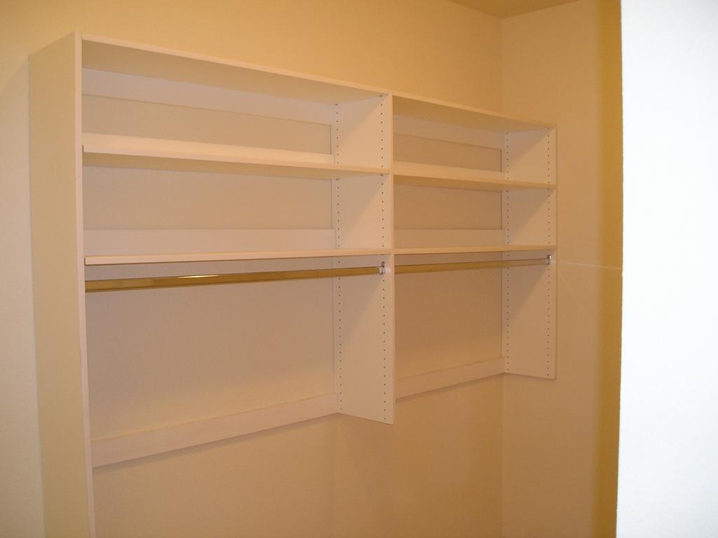 Master bathroom vanities and cabinets. Surface tops are Mojave color of Corian. Notice