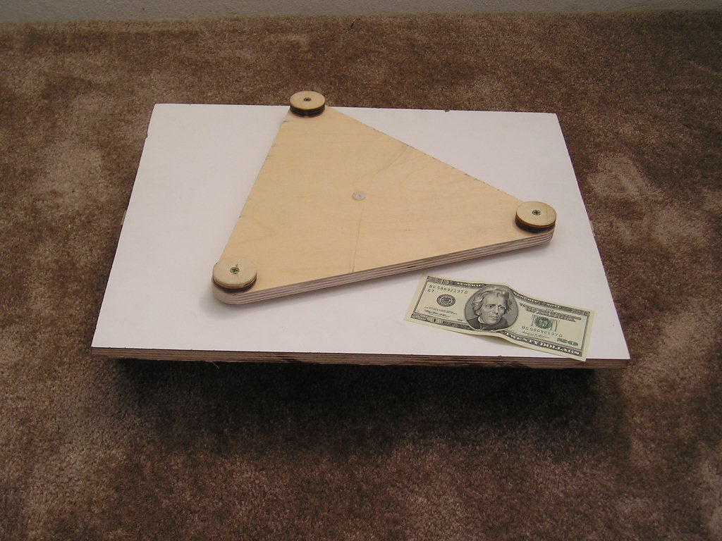 board. Cut out three 1" diameter plywood rings, and glue and screw them