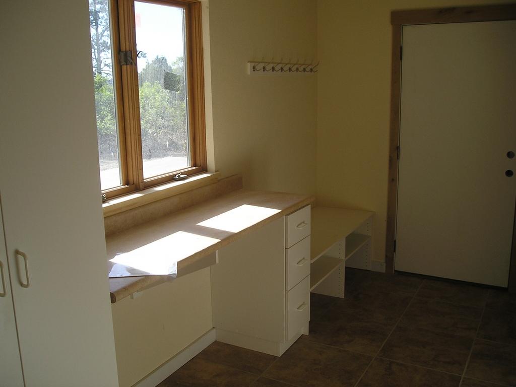 shoes, and hooks for coats. This utility room doubles as a laundry room